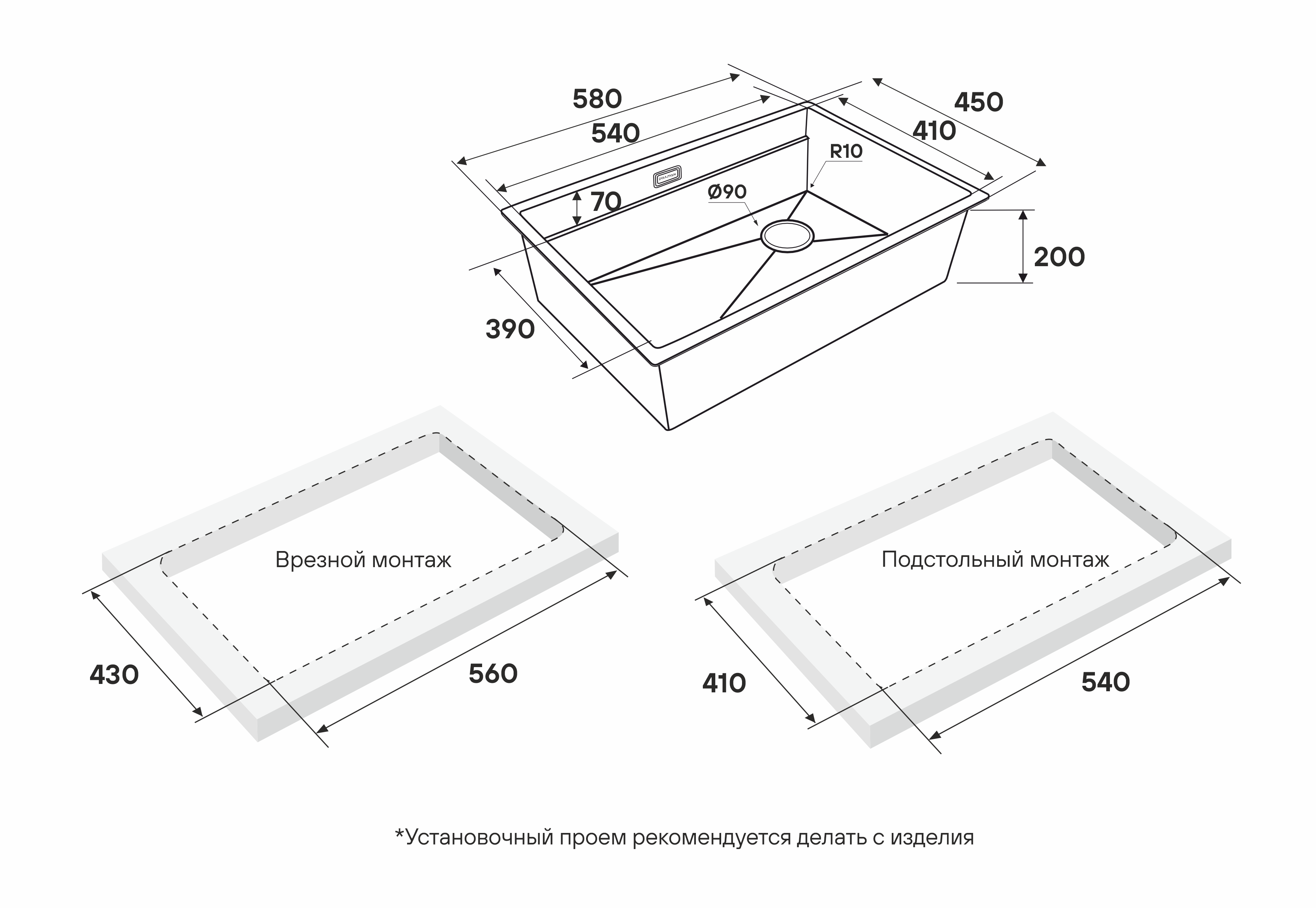 Толщина мойки 1,2 мм по всей поверхности. Ручной метод производства и ровный плоский кант мойки позволяют устанавливать NEXT-PRO 58 UNI поверх столешницы, подстольным способом, вровень со столешницей и «под ламинат».Гарантия 15 лет.