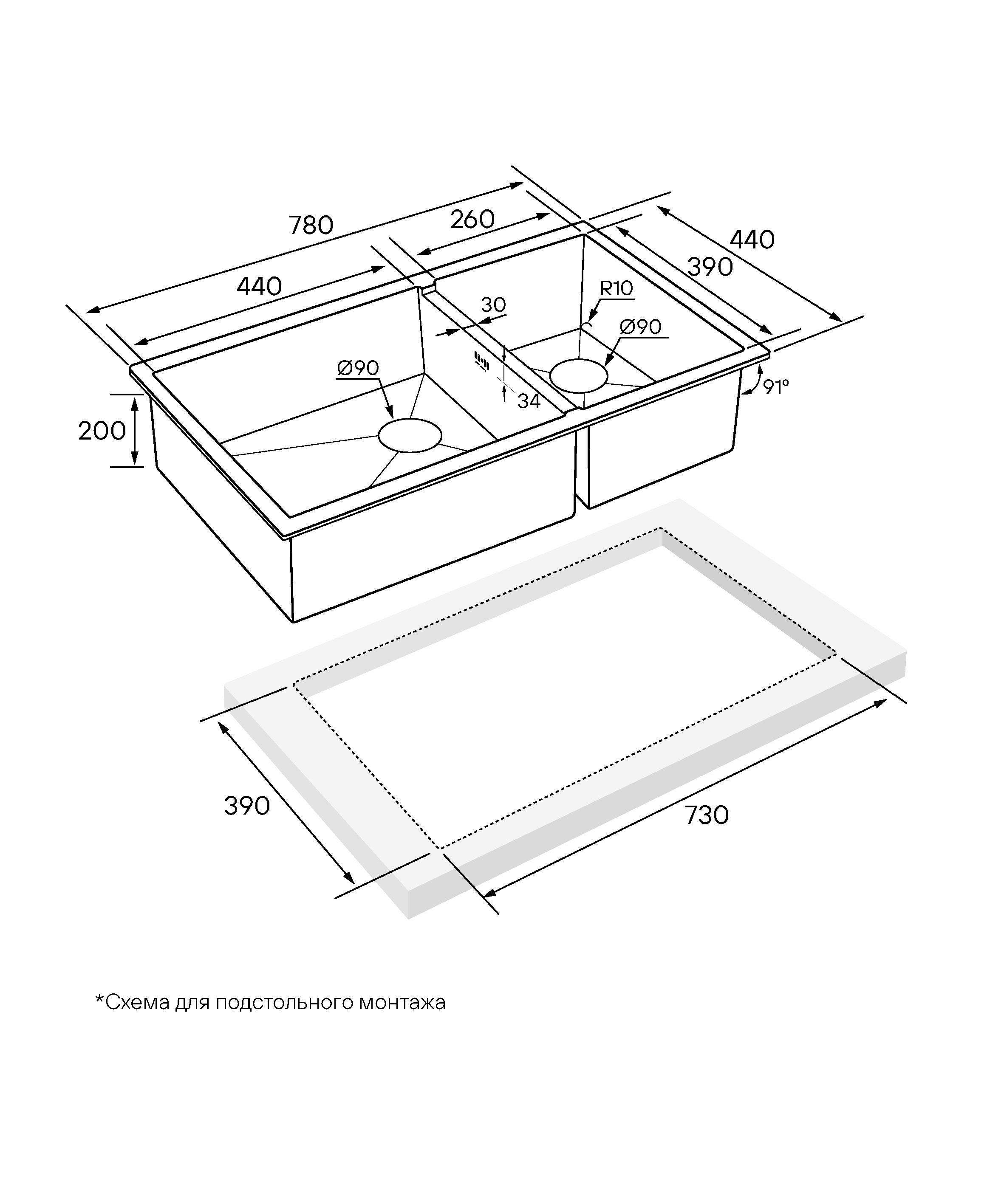 Функциональное плоское крыло; Готовое отверстие для кухонного смесителя.