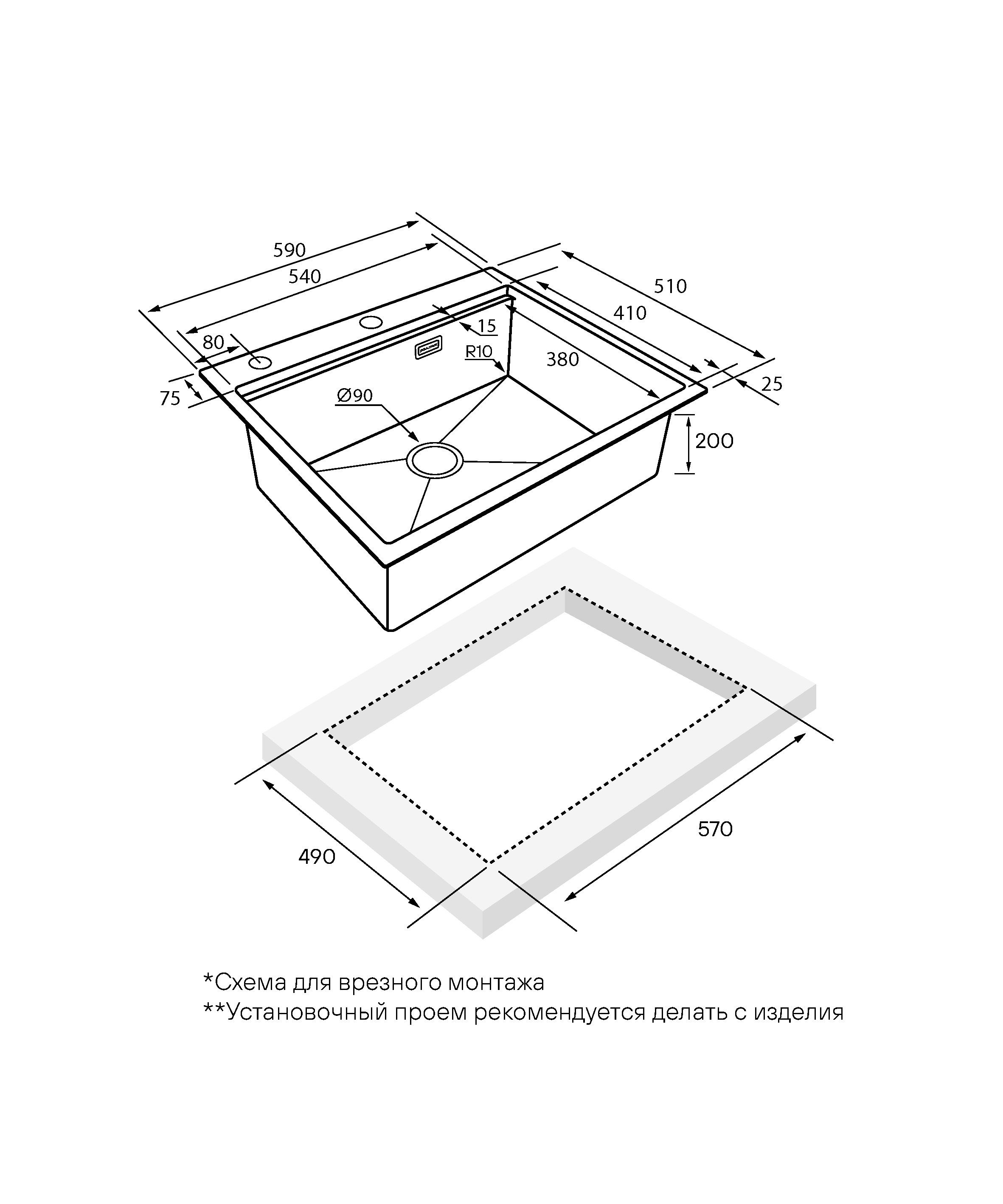 Отличительной особенностью модели KRONER-PRO является наличие интегрированного выступа для установки аксессуаров в чашу мойки: ролл-мата PRO, коландера ADVANCE A405, разделочной доски.