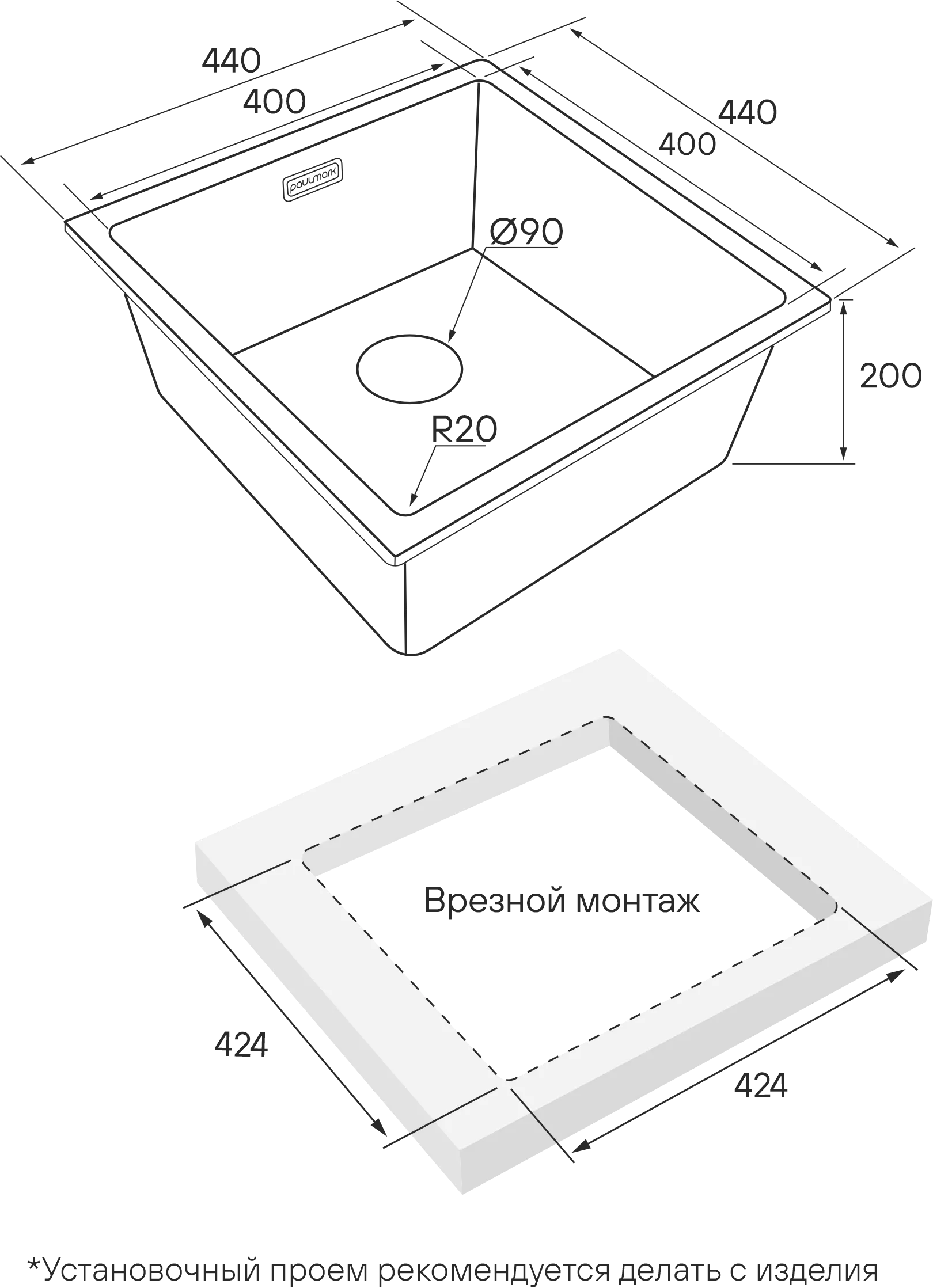 Мойки VISTA UNI могут быть установлены как врезным способом поверх столешницы, так и под столешницу (подстольный монтаж).