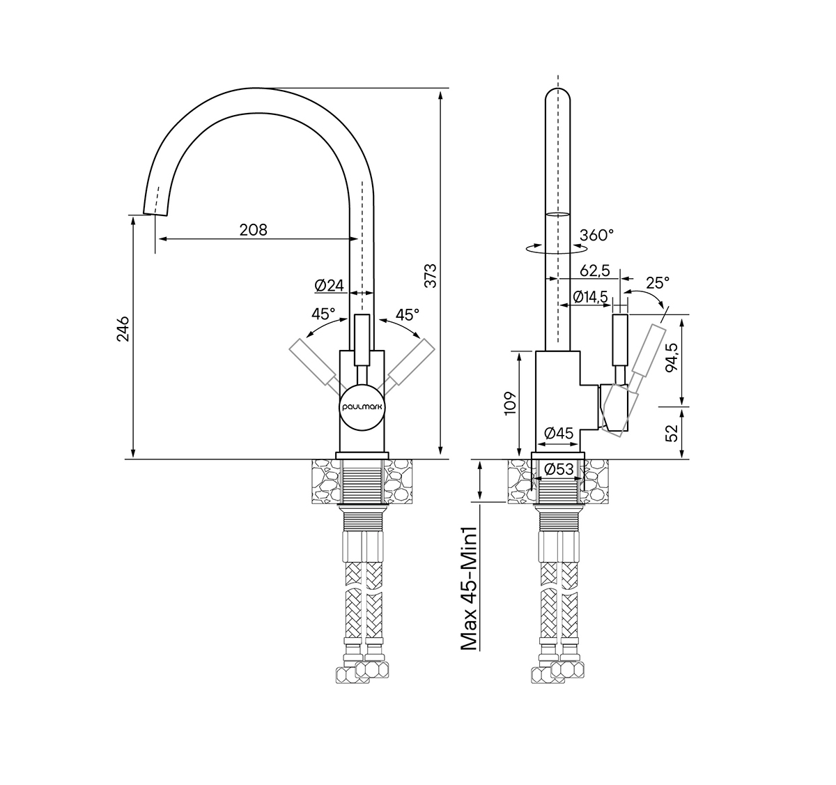 Смеситель Paulmark Holstein с высоким поворотным изливом