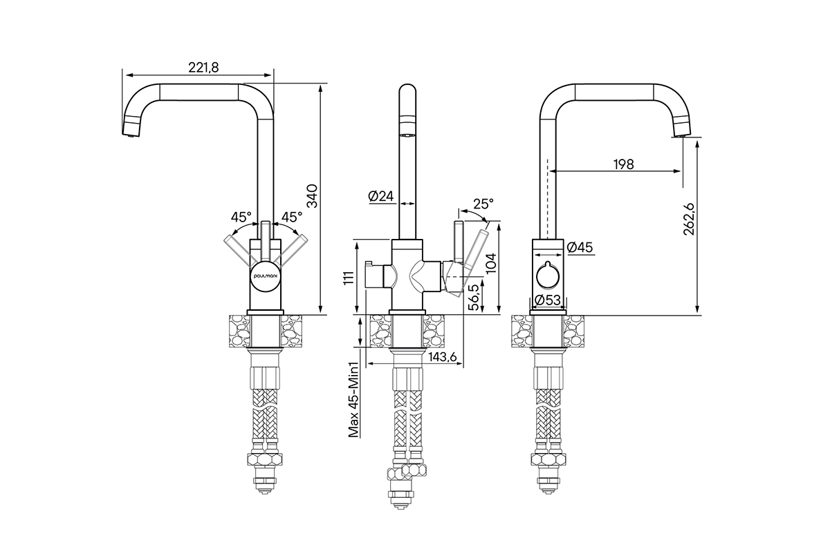 Конструктивная технология Trinkwasser® предусматривает поступление фильтрованной воды, которая не смешивается с водопроводной. Фильтрованная вода подается через отдельные трубку и аэратор.