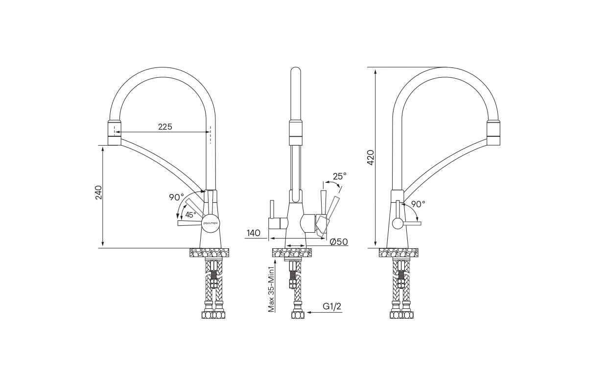 Смеситель для кухни с возможностью подключения фильтра SIEGEN изготовлен из высококачественной латуни, которая отвечает высочайшим европейским стандартам качества, не содержит свинца, не разрушается со временем и безопасна для здоровья.