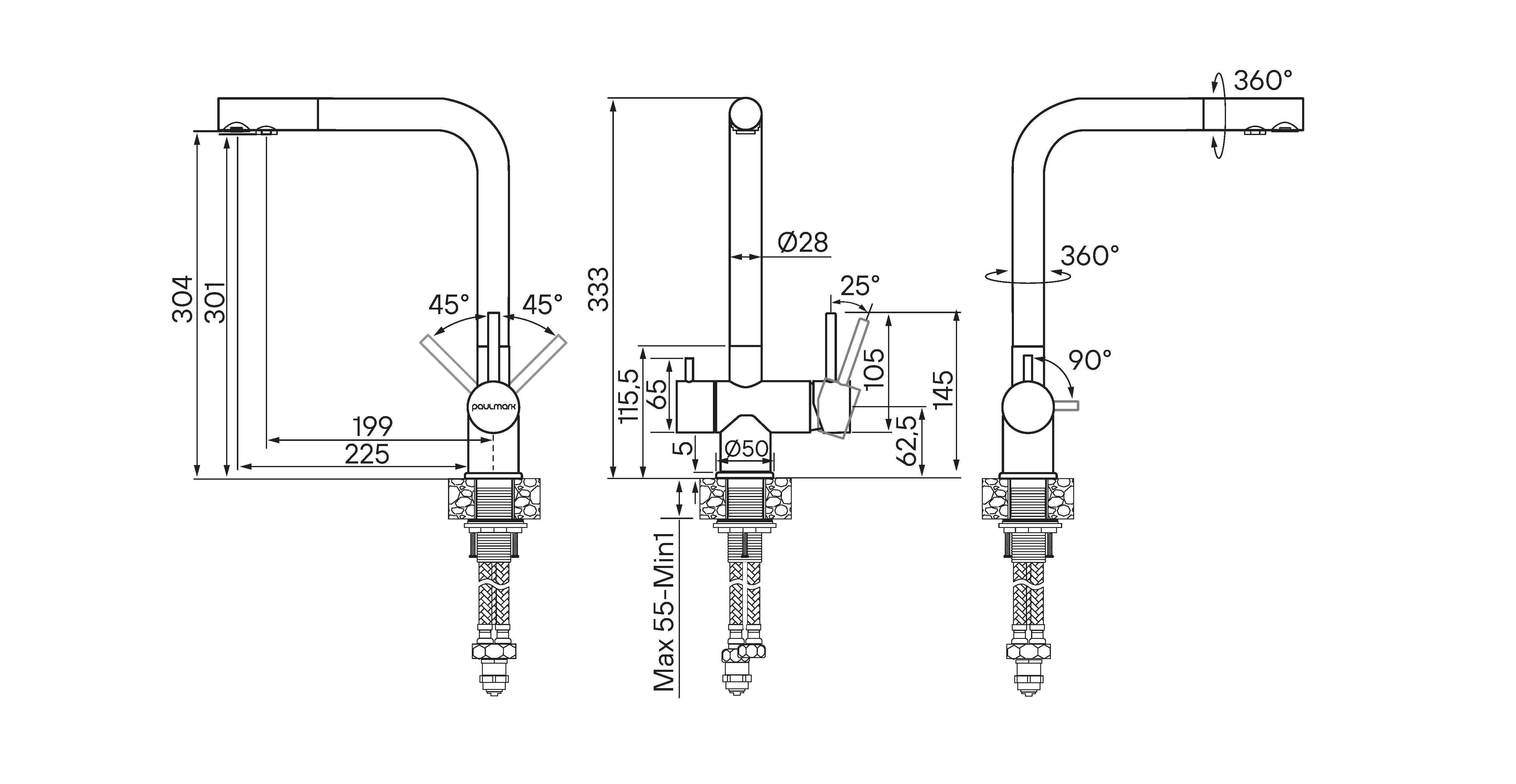 Изготовлен из нержавеющей стали AISI 304. Нержавеющая сталь AISI 304 легирована никелем, марганцем, медью и хромом, что обеспечивает ей повышенную прочность и устойчивость в коррозионных средах, такая сталь не подвержена деформациям.